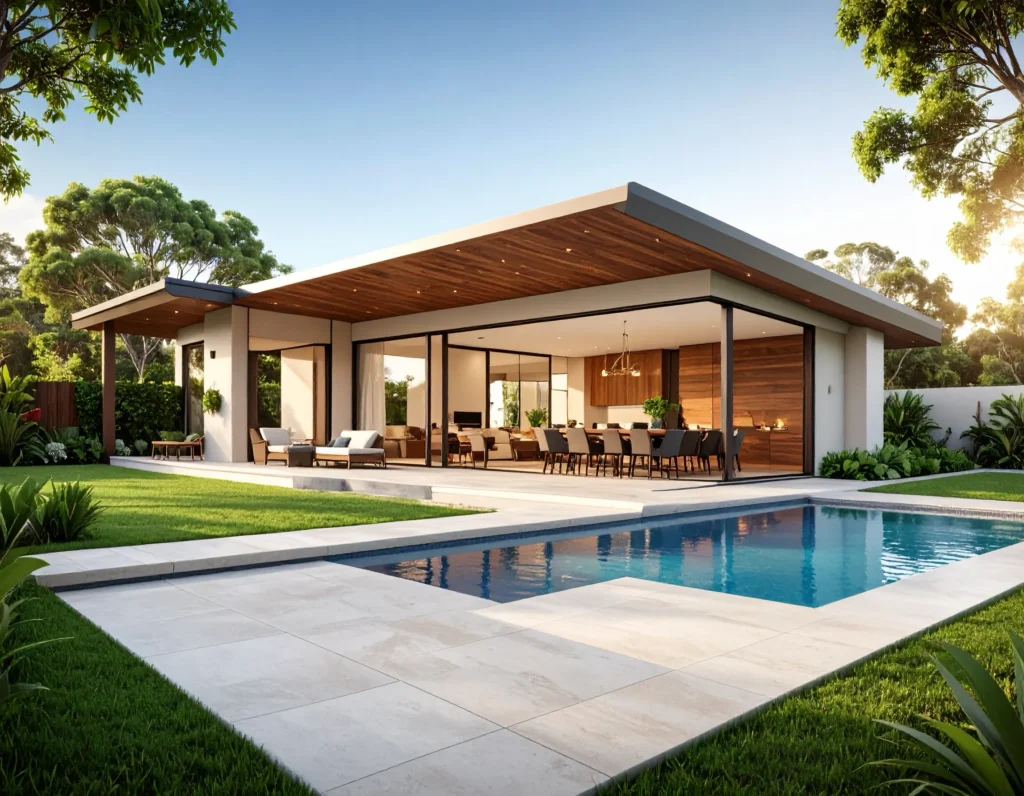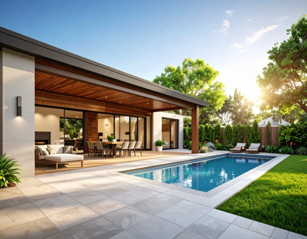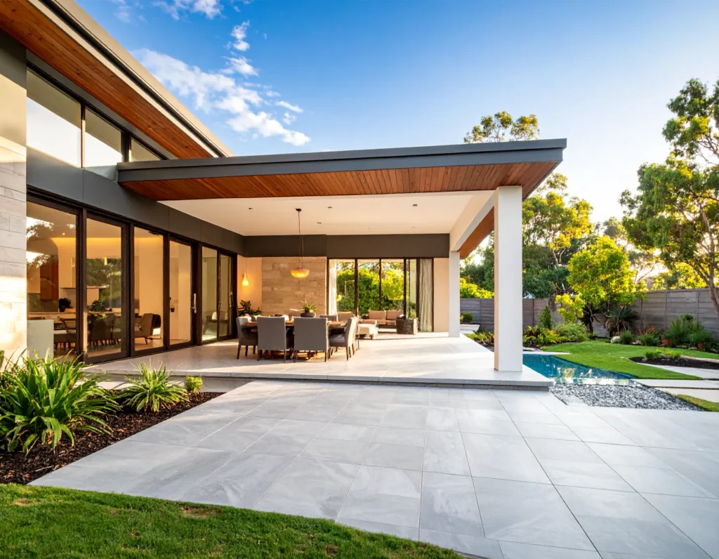 Modern alfresco design ideas focus on restraint, clarity, and performance. Neutral colour palettes create calm, adaptable spaces that connect easily with interior rooms, while performance led materials ensure the area can handle heat, moisture, and regular use. Seamless indoor outdoor transitions are a defining feature, achieved through compatible flooring choices rather than identical surfaces. Low maintenance finishes are preferred, allowing the space to stay functional and visually clean with minimal upkeep.