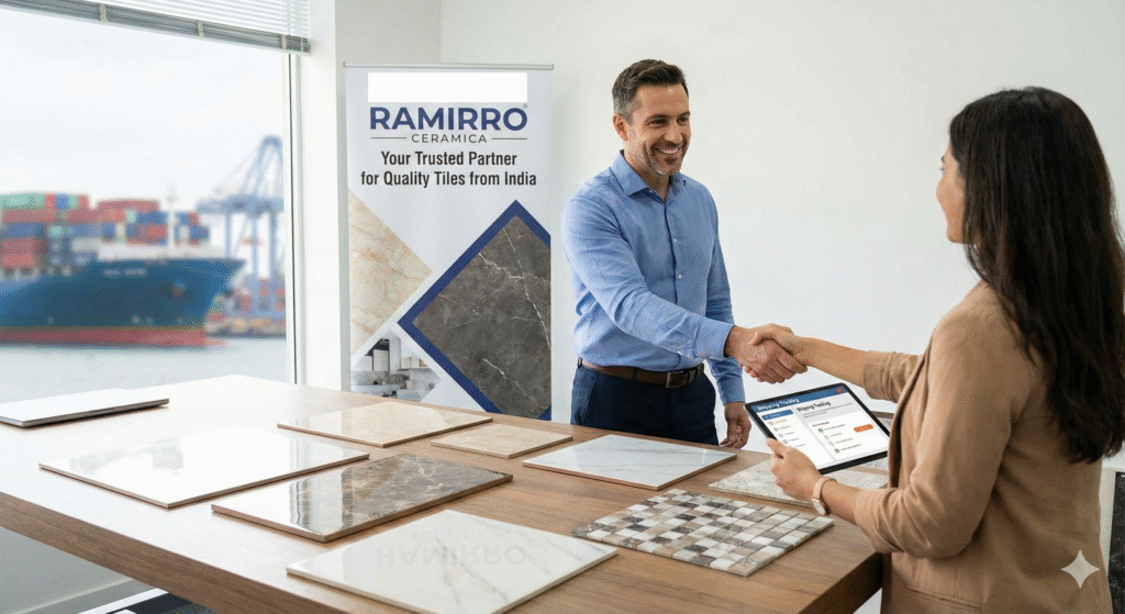 Partner with Ramirro Ceramica for a smooth, transparent, and timely import experience from factory to FOB Mundra Port. With clear Incoterms, smart logistics, and reliability, Ramirro Ceramica ensures your India’s tile shipments meet global standards.
