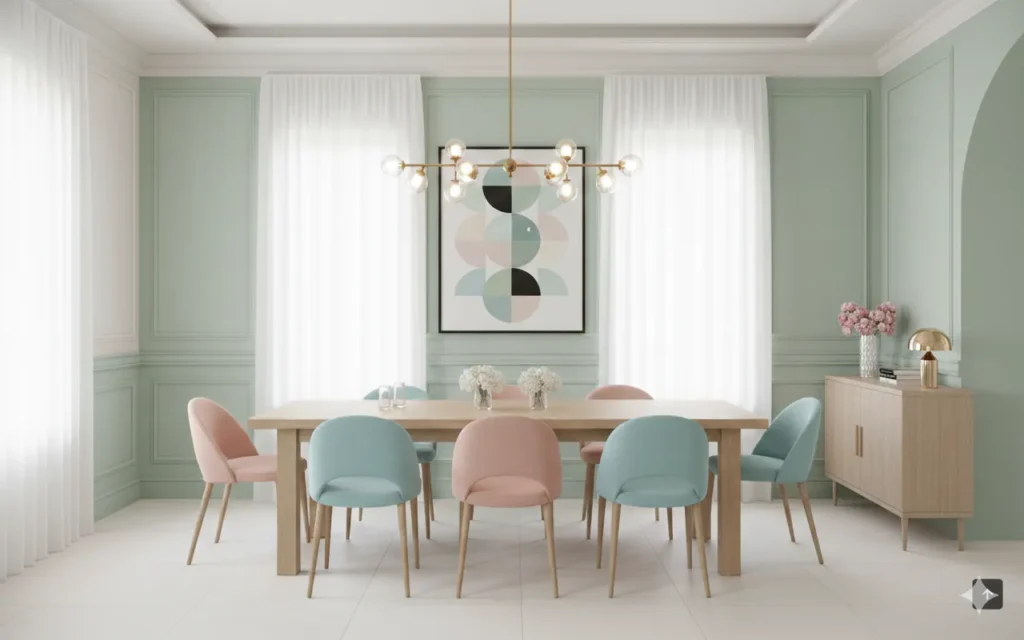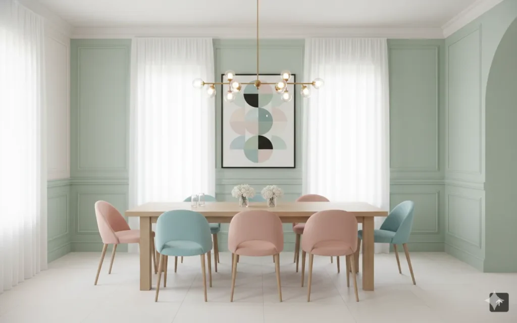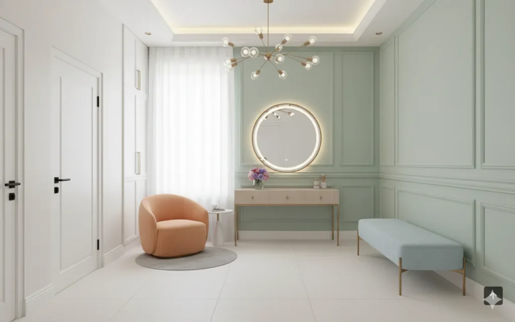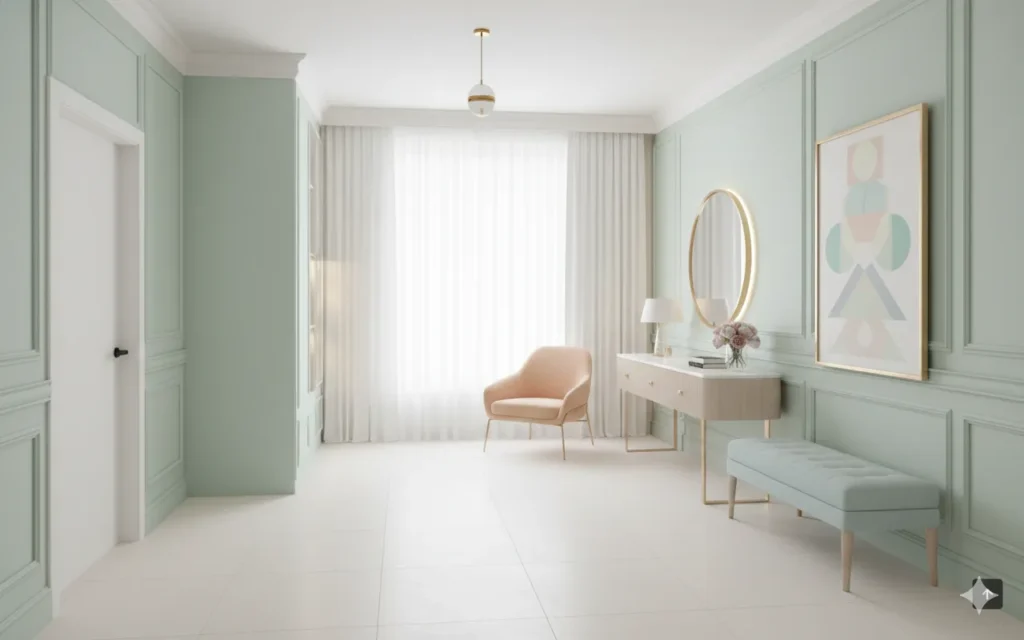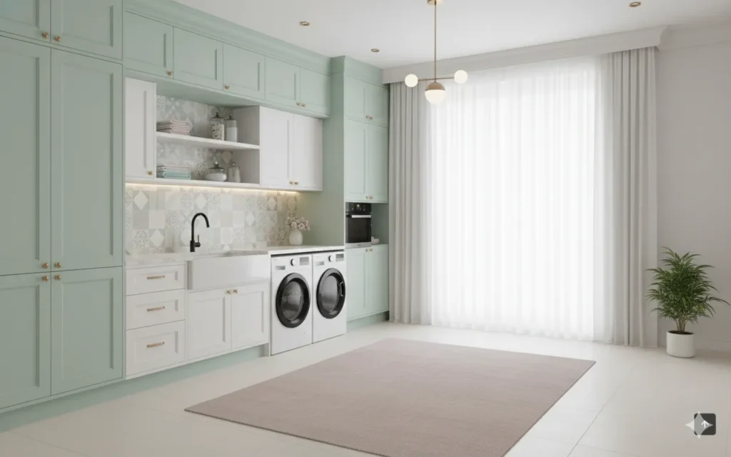 Muted greens bring nature indoors, reinforcing the trend toward soothing, wellness focused spaces.