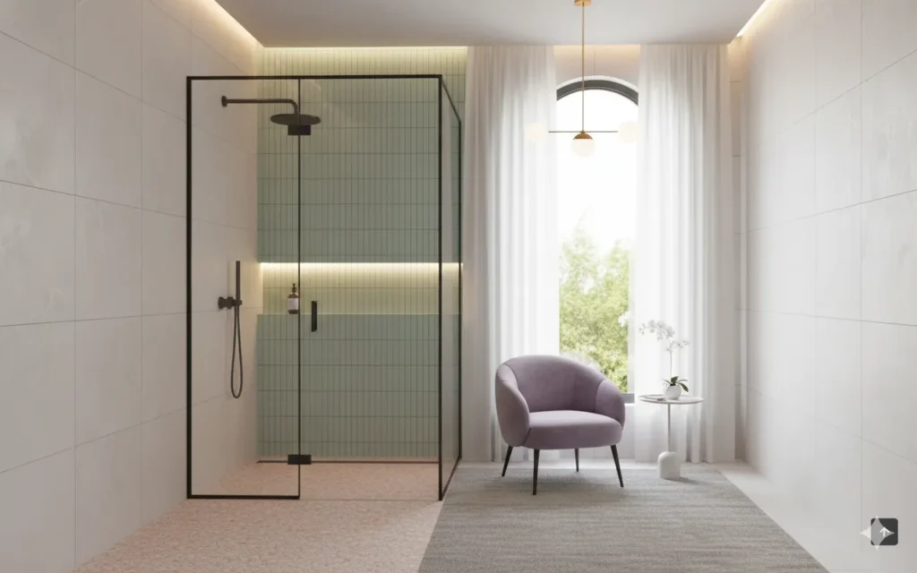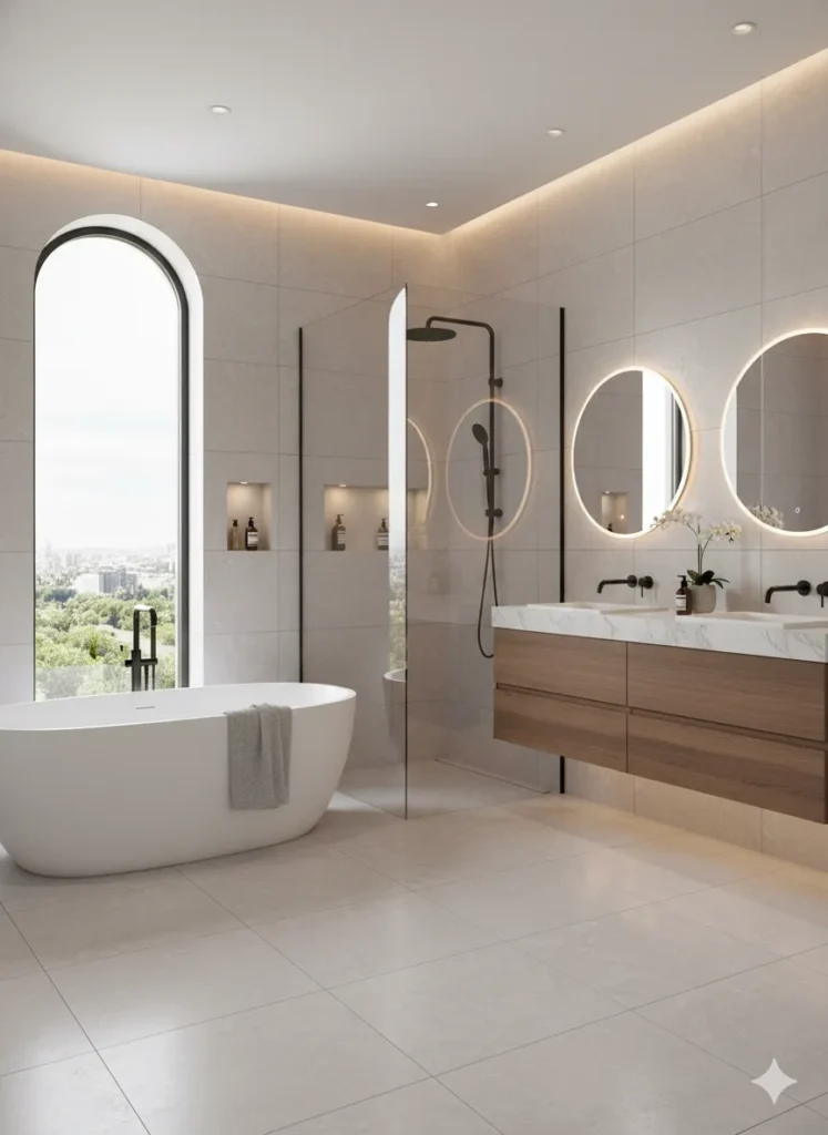 • Pairs beautifully with wood look tiles, adding warmth without dimming the overall brightness.