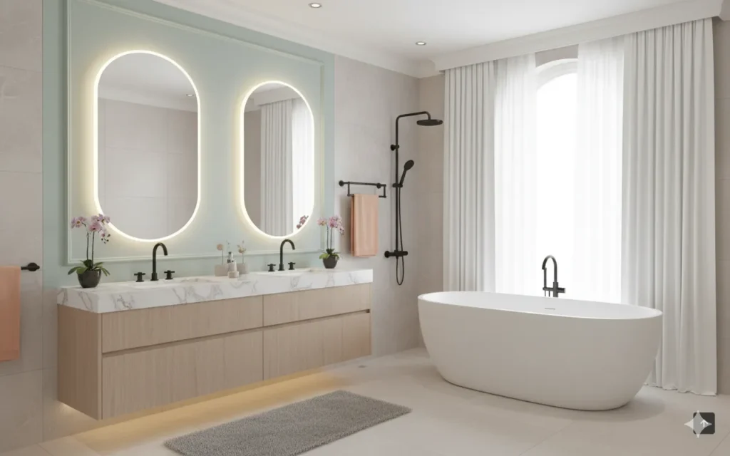Cloud Dancer brings a soothing, spa like calm to bathroom interiors.