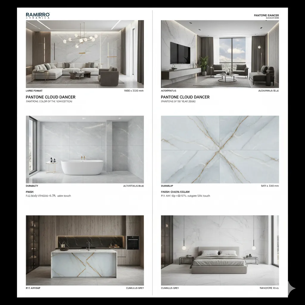 For Ramirro Ceramica, transforming color trends into durable architectural materials is a core design philosophy. Instead of treating Pantone’s Color of the Year as a surface level trend, Ramirro Ceramica studies how each shade can shape real spaces through texture, finish, and long lasting performance. With Cloud Dancer, this approach opens the door to a new generation of tiles that feel calm, refined, and visually balanced.