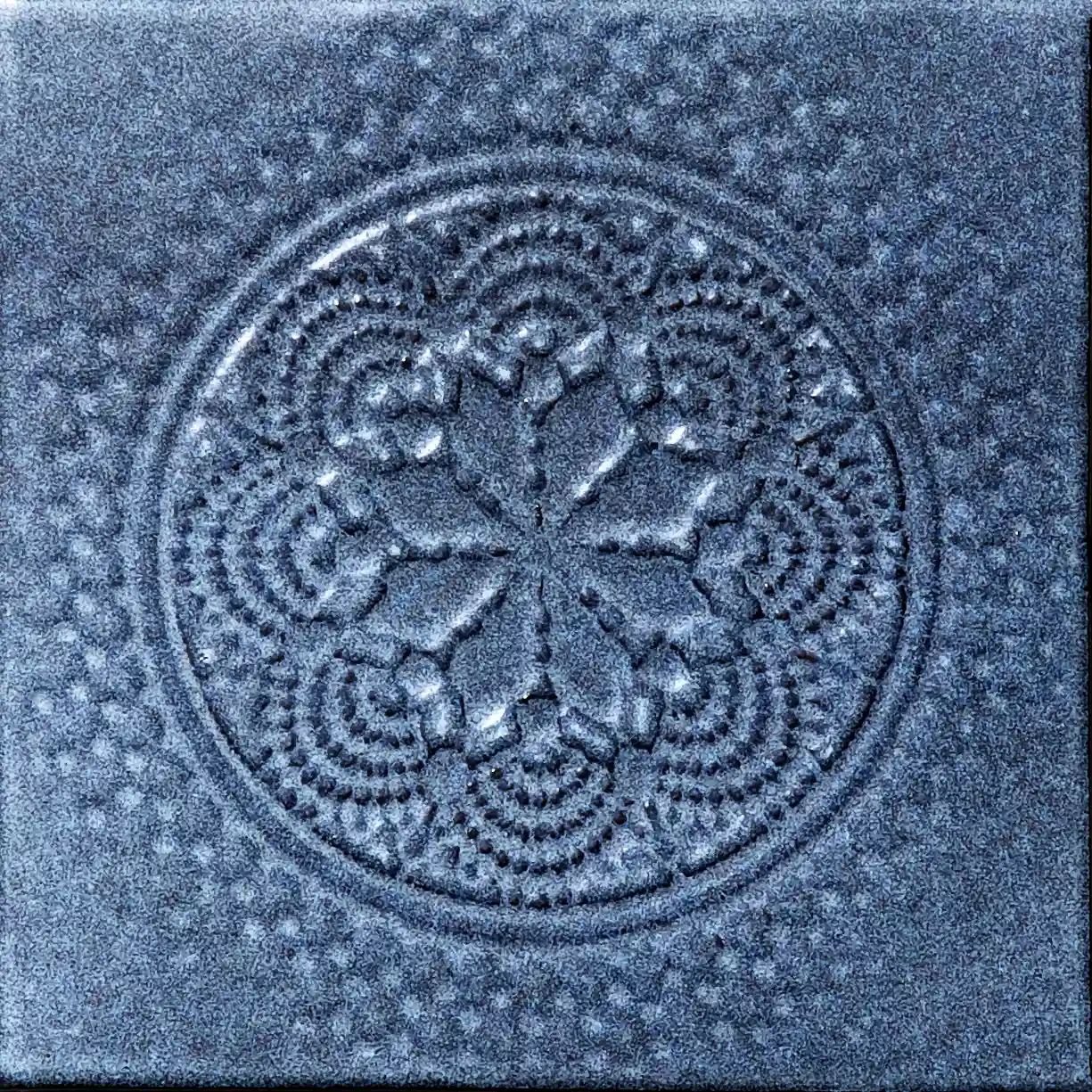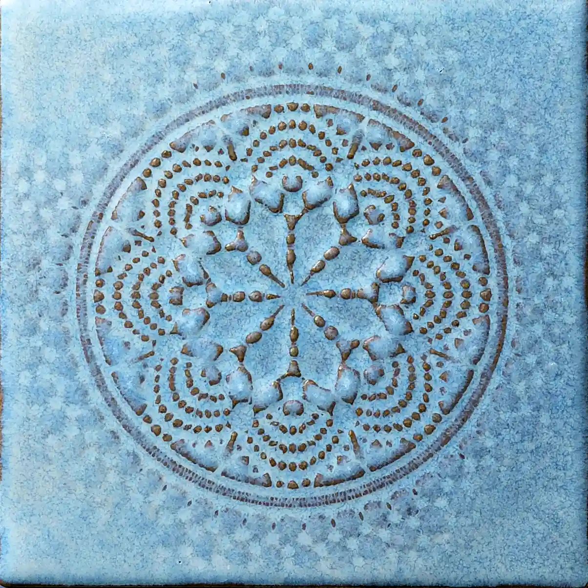 Fog is designed to feel like layered mist, with glazes that shift subtly across each tile instead of a flat, uniform colour. The series includes both plain tiles (FOG‑1 to FOG‑4) and matching mandala‑style relief pieces that add a lace rosette in the centre, giving designers the choice of quiet fields or ornate accents using the same colour family.