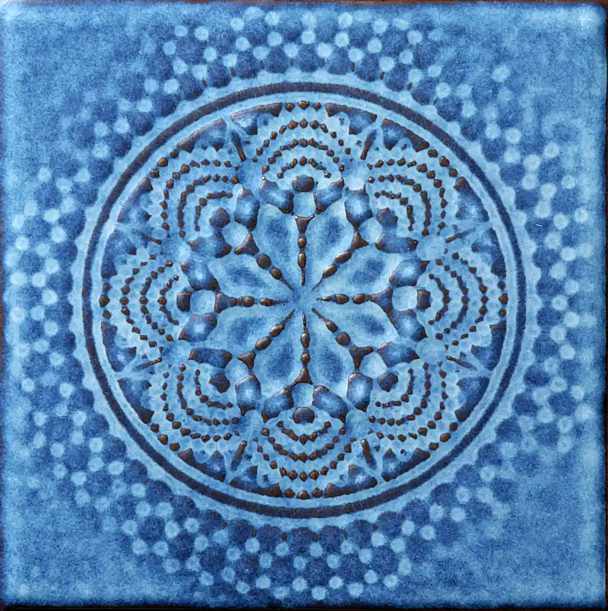 | Surface | Soft variegated plain glaze | Lace‑patterned mandala relief |
