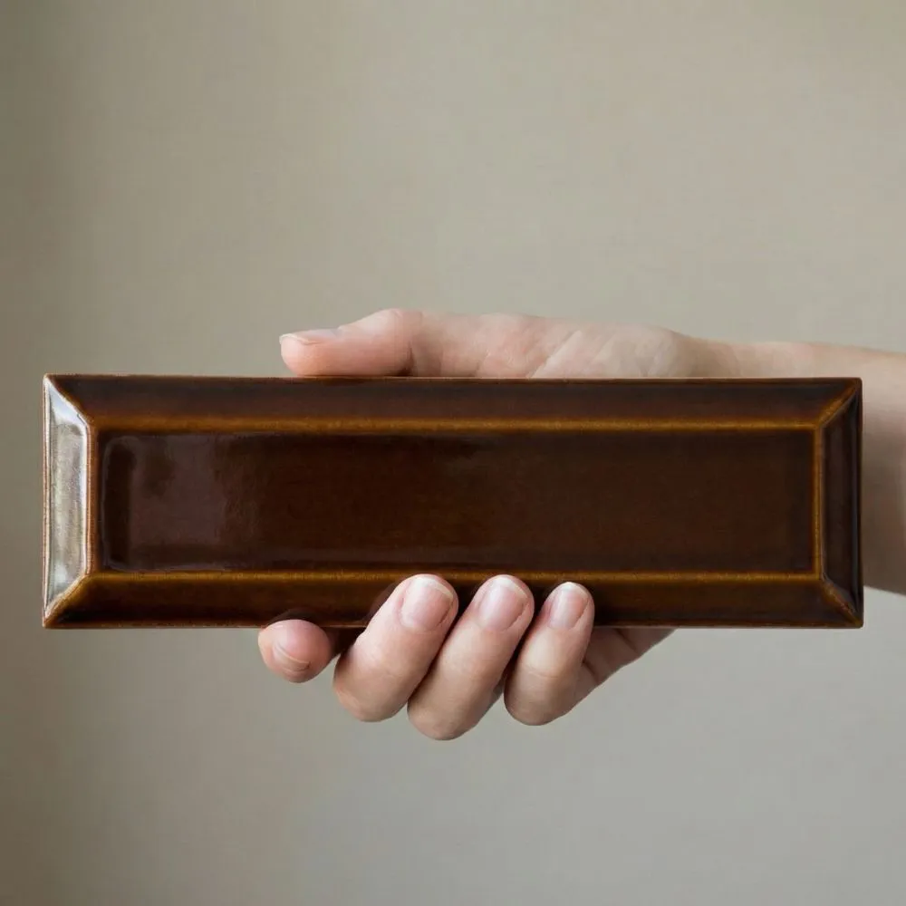 Zoid is designed as a “ceramic android” – a three‑dimensional tile that combines sharp geometry with soft, flowing glazes. The tapered bevel catches light and shadow, making walls and floors look more architectural compared to standard flat subway tiles.