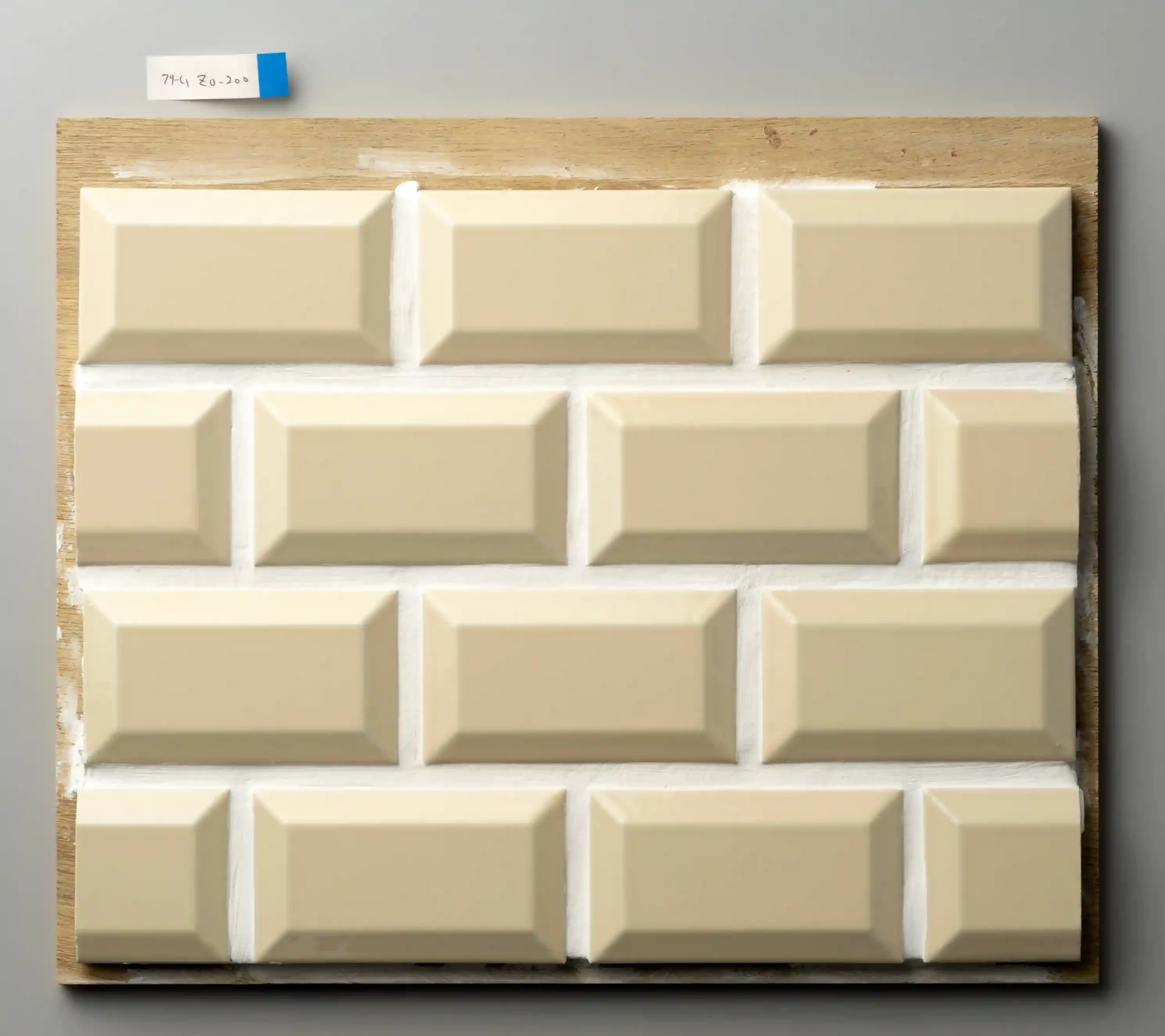 Because Zoid tiles have pronounced bevels and non‑uniform glazes, slight differences in shape, colour width and surface texture are normal and part of the design concept. The “ant‑like” foot shape on the back aids adhesion, but joint material must be packed carefully to support the relief edges.