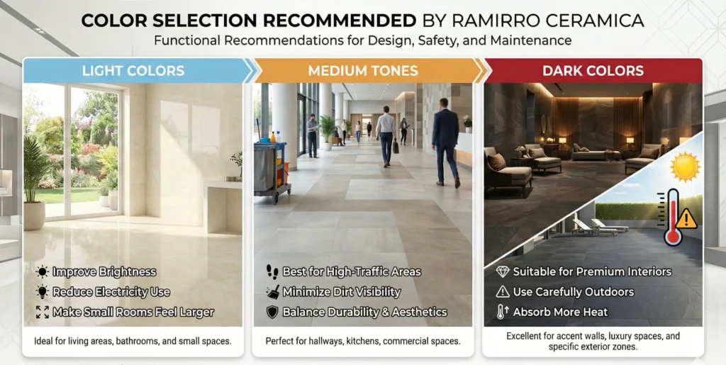Ramirro Ceramica recommends colors based on functionality, not just aesthetics: